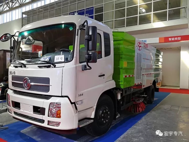 宏宇专汽此次参展的代表车型为采用东风天锦底盘改装制作而成的道路洗扫车(整车型号:HYS5160TXSE5),该款洗扫车结合了扫路车、高压清洗车和洒水车的多重功能,对路面清扫的同时可实现对路面高压冲洗,清洁效果好,作业无扬尘;标配低压前冲和后喷雾,可对路面经行冲洗保湿;随车配有洗车卷盘和高压水枪,可便利的冲洗路边小广告。