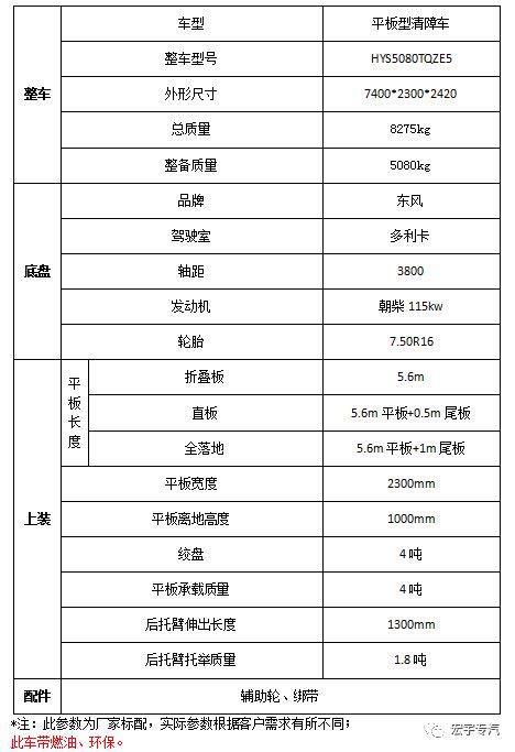 HYS5080TQZE5型清障车参数